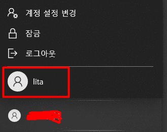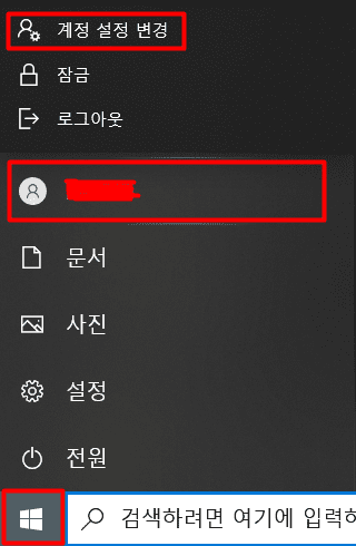 윈도우 버튼 > 프로필 아이콘 클릭 > 계정 설정 변경 클릭