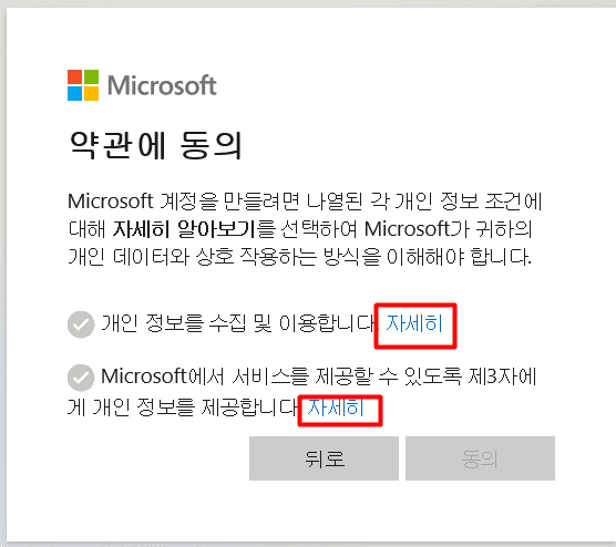 체크박스를 바로 누르는 것이 아닌 '자세히'를 눌러서 약관에 동의합니다.
