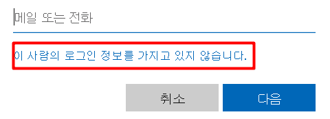 '이 사람의 로그인 정보를 가지고 있지 않습니다' 클릭